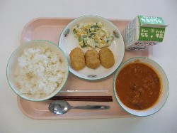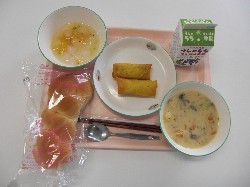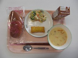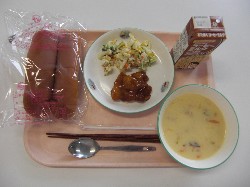 黒パン、コーヒーミルク さつまいものクリームスープ、カレーロール つぼみサラダ ![]() |