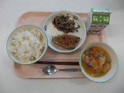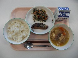 ごはん、牛乳、生揚げと大根の煮物 あじの辛味焼き、青菜のごま和え ![]() |