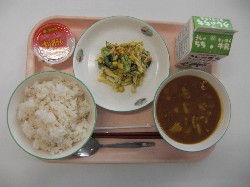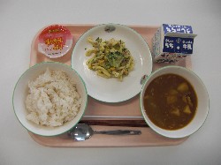麦ごはん、牛乳、ポークカレー ミックスサラダ、すりおろしりんごゼリー ![]() |