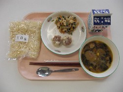 中華めん、牛乳、しょうゆラーメン シューマイ、油揚げと野菜の和え物 ![]() |