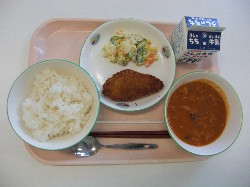 ごはん、牛乳、米粉ハッシュドポーク 白身魚フライ、ポテトサラダ ![]() |