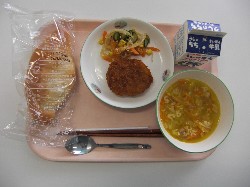 シュガークッペ、牛乳、ABCスープ メンチカツ、野菜サラダ ![]() |