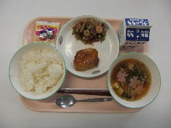 酢めし、牛乳、すまし汁 てりやきチキン、五目ちらしの具 ![]() |