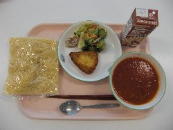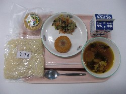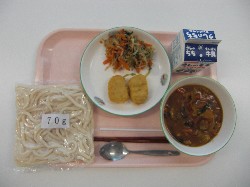 地粉うどん、牛乳、カレー南蛮 コーンフライ、水菜のサラダ ![]() |