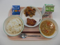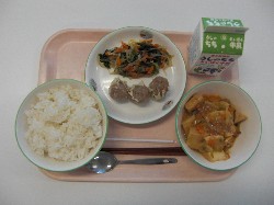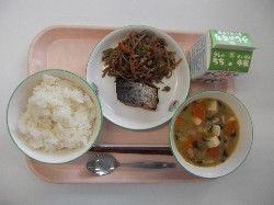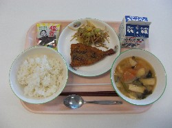 ごはん、牛乳、さつま汁 さわらのスタミナ焼き、五目きんぴら ![]() |