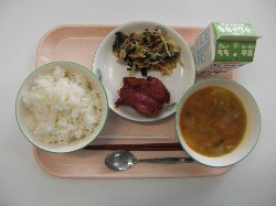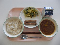 麦ごはん、牛乳、チキンカレー ウインナー、小松菜とわかめのサラダ ![]() |