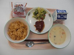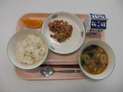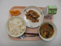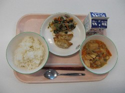 ごはん、牛乳、豚汁 てりやきチキン、おかか和え ![]() |