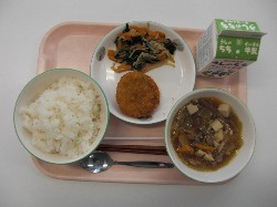 ごはん、牛乳、けんちん汁 タコメンチカツ、ほうれんそうのお浸し ![]() |