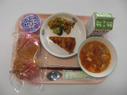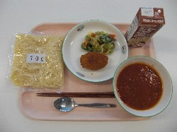 ごはん、牛乳、マーボ生揚げ 揚げぎょうざ、春雨サラダ ![]() |