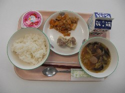 ごはん、牛乳、さつま汁 若鶏の唐揚げ、五目きんぴら ![]() |